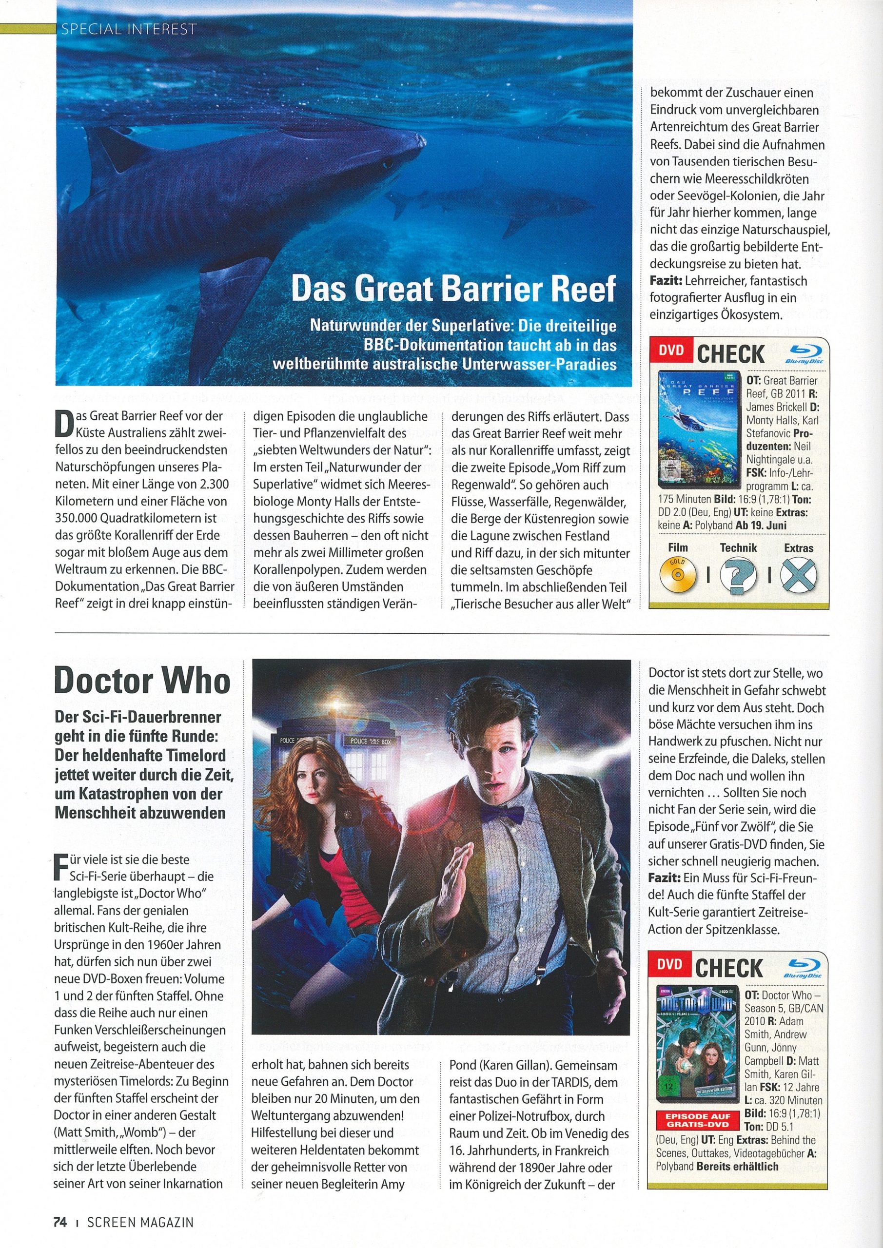 Veröffentlicht am 24.05.2012 enthielt diese Ausgabe des „Screen DVD“ Magazins auf der Beigabe DVD eine Folge „Doctor Who“.