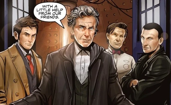 Die verlorene Dimension ist ein Comic-Crossover, in dessen Geschichte mehrere Inkarnationen des Doktors – darunter der neunte, zehnte, elfte und zwölfte Doktor – vereint, um eine Bedrohung aus einer kollabierenden Dimension zu stoppen. Kurzfristig begegnen auch der vierte und achte Doktor ihren zukünftigen Inkarnatinen.