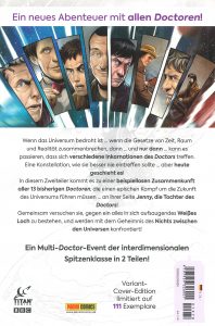 Die Vier Doktoren ist eine Comicserie, in der der Zehnte, Elfte und Zwölfte Doktor zusammenkommen, um eine Katastrophe zu verhindern, die das Universum bedroht. Die Geschichte dreht sich um die Konsequenzen einer verbotenen Begegnung in Raum und Zeit.